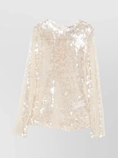 Round Neck Long Sleeve Knitwear With Sequins In Neutral