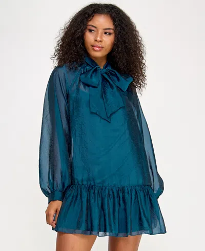 Juniors' Shimmer Off-the-shoulder Bow Front Dress In Blue