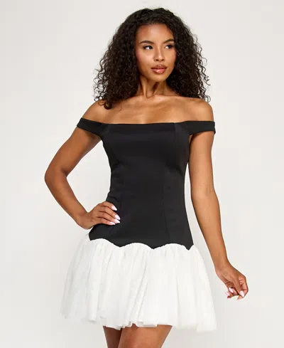 Juniors' Off-the-shoulder Drop-waist Dress In Multi