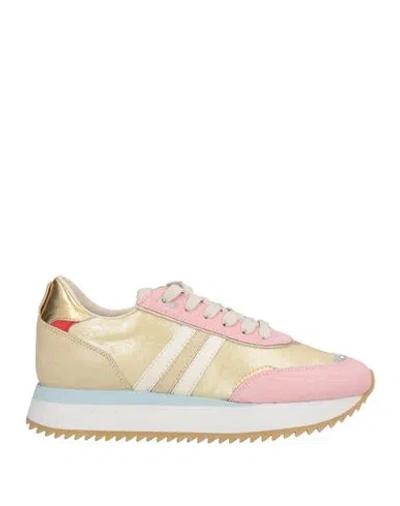 Woman Sneakers Gold Size 7 Leather, Textile Fibers