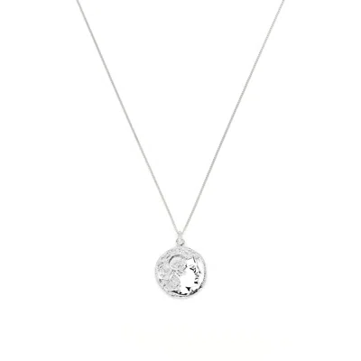 Men's Alexander The Great Bust Antique Coin Necklace, Unisex, White Rhodium Over Sterling Silver