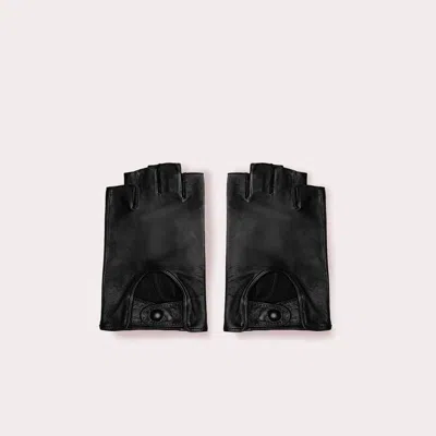 Fingerless Italian Leather Driving Gloves In Black