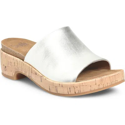 Sofft Elsey Leather Flat In Silver Metallic