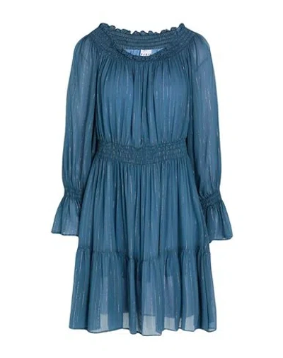 Woman Mini Dress Slate Blue Size 4 Viscose, Metal