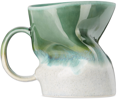 Green & Off-white Distorted Gt021 Mug In Green/white