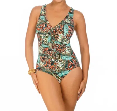 Ruffle Front One Piece Swimsuit In Sol Mayan Riviera In Multi