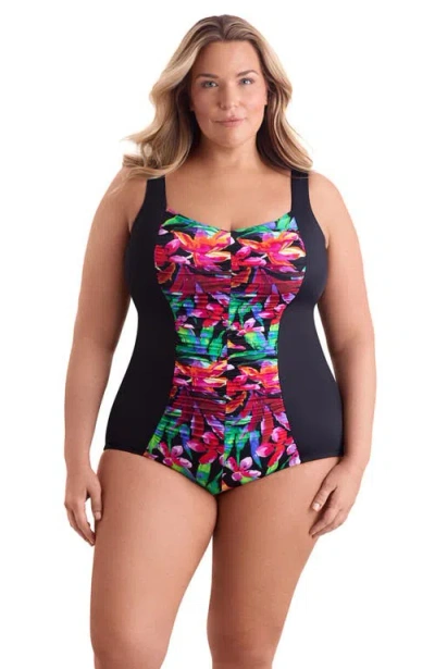 Shirred Front Princess Seam Girl Leg Plus Size One-piece Swimsuit In Multi
