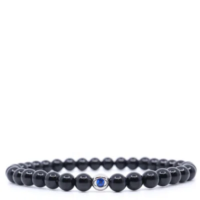 Men's Black / Blue / Silver Evil Eye Stainless Steel & Black Tourmaline Beaded Bracelet In Multi