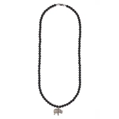 Men's Black / Silver Black Tourmaline & Diamonds Elephant Beaded Necklace In Multi
