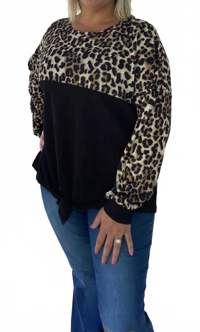 Carol Leopard & Striped Raglan Top In Oatmel In Gray