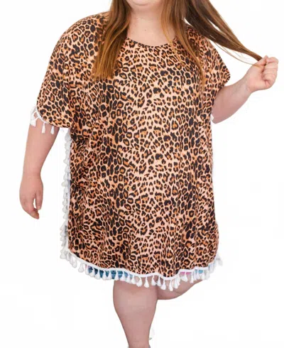 Leopard Fringe Caftan Top In Brown In Animal Print