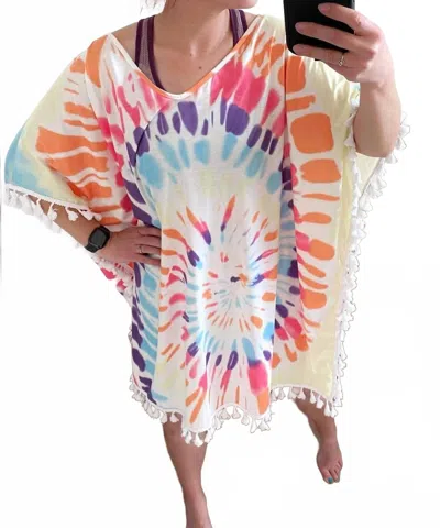 Tie Dye Fringe Caftan Top In Blue Multi