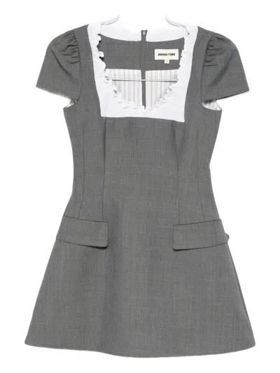 Ruffled Wool-blend Gauze-trimmed Twill Mini Dress In Gray