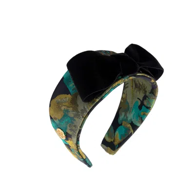Women's Black / Green Green Autumn - Floral Headband With Velvet Bow In Multi