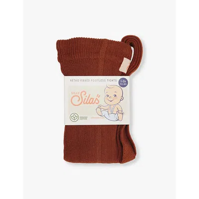 Kids' Retro Footless Ribbed Organic-cotton Knitted Tights 6 Months-3 Y In Cinnamon