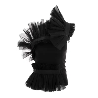 Women's Black One Layer Tulle Top With Volumetric Applications
