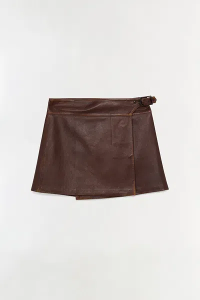 Buckled Faux-leather Mini Skirt In Brown