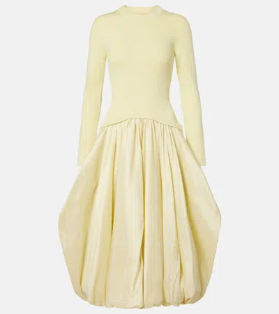 Izzy Ribbed-knit And Taffeta Midi Dress In Yellow