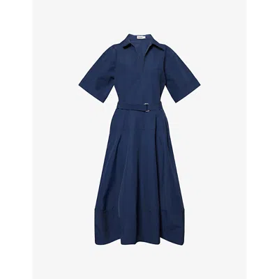 Womens Midnight Deanna Belted Cotton-blend Midi Dress In Blue