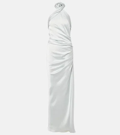 Sarabella Draped Satin-crepe Halterneck Maxi Dress In White