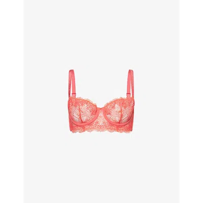 Womens Allure Half-cup Embroidered Mesh Bra Coralia Red