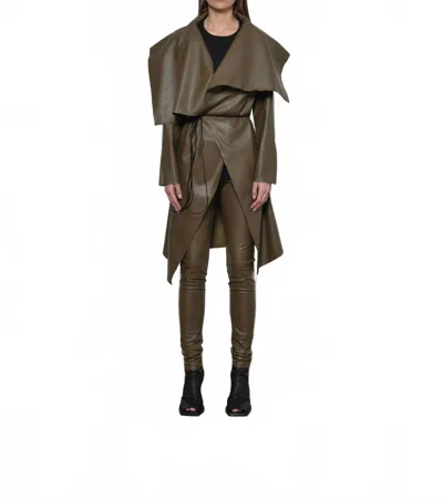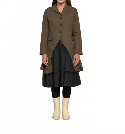 Uneven Long Sleeve Coat In Olive In Green