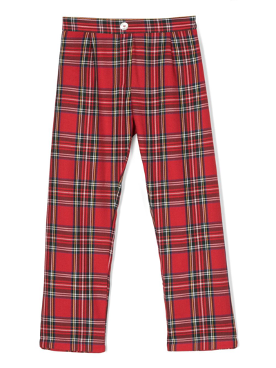 Kids' Velvet-effect Floral-embroidery Dress In Red