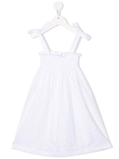 Kids' Check-pattern Embroidered Dress In Neutrals