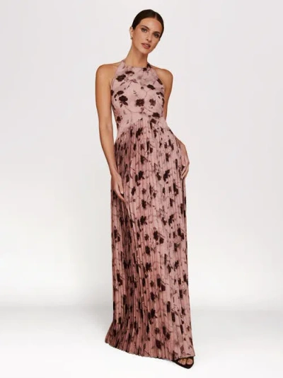Floral Halter Pleated Ruffle Maxi Dress In Pink
