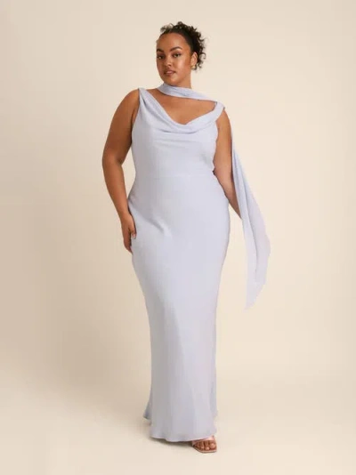 High Cowl Drape Chiffon Bridesmaid Dress In Blue