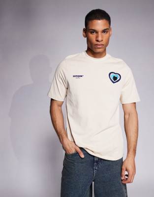 Contrast Embroidered Heart Detail T-shirt In Neutral