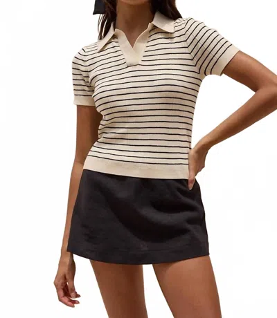 Short Sleeve Striped Knit Polo Top In Ivory In Neutral
