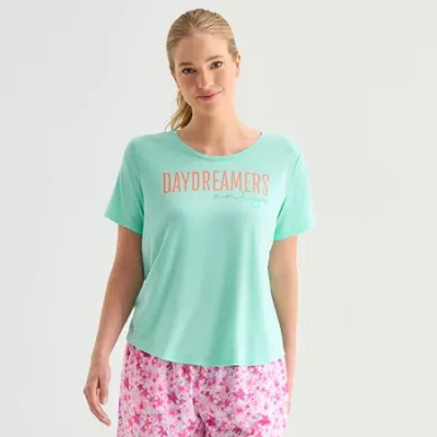 Womens Crew Neck Short Sleeve Pajama Top In Green