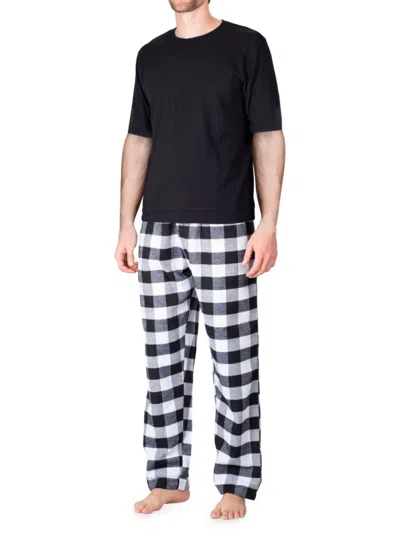 Knit Pajamas In Black With Buffalo Check