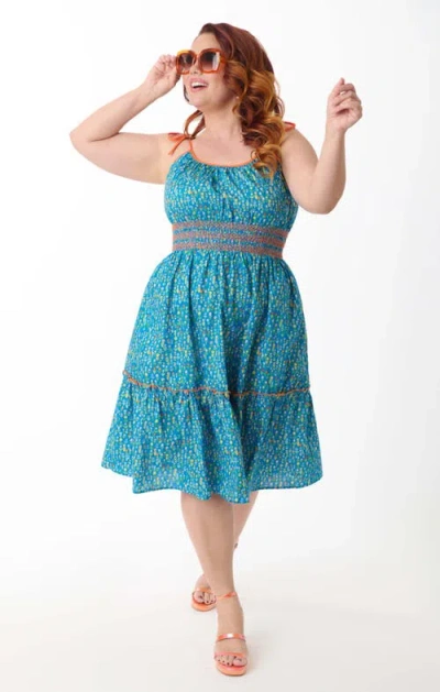 Plus Size Tiered Flare Dress In Blue