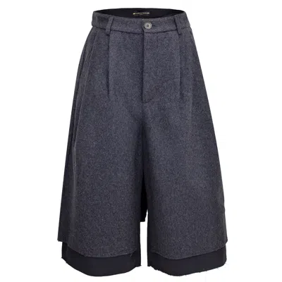 Men's Grey Wool Shorts With Overflowing Bottoms