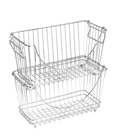 Set Of 2 Medium Stacking Baskets With Handles, 12.63" X 5.5" In Chrome