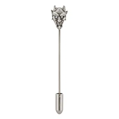 Men's Devil Lapel Pin In Oxidised Silver With Diamond Eyes In Gray