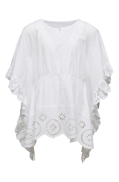 Kids' Eyelet Ruffle Cotton Cover-up Dress In White