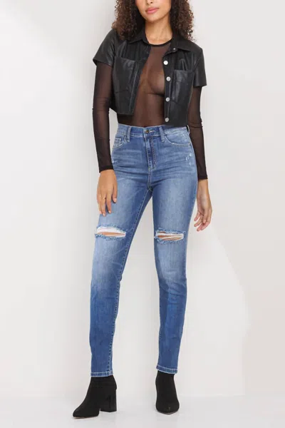 Mid Rise Straight Ankle Jean In Medium Wash In Blue