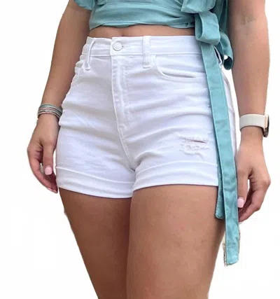 Bermuda Shorts With Slight Hip Distressing In Medium Dark In Blue