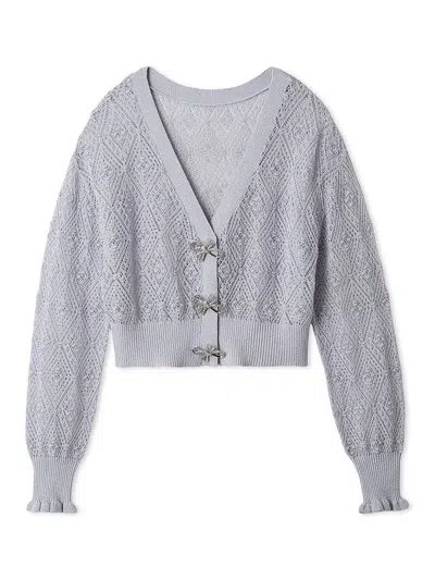 Ribbon Button Sheer Cardigan In Gray