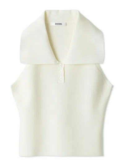 Asymmetrical High-neck Shoulder Knit Top In White