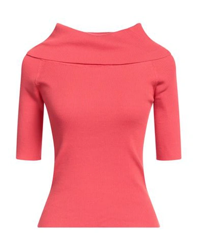 Woman Turtleneck Coral Size 8 Cotton, Silk In Red
