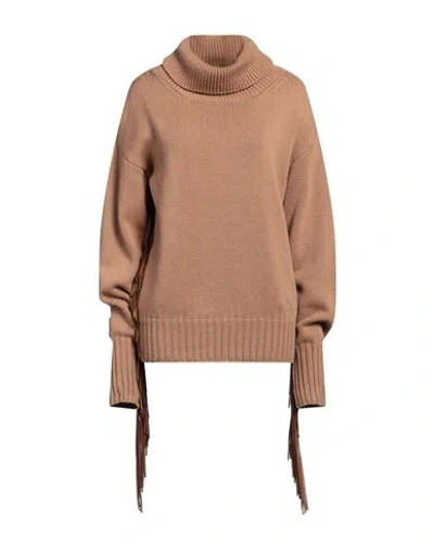 Woman Turtleneck Camel Size 10 Wool, Cashmere In Beige
