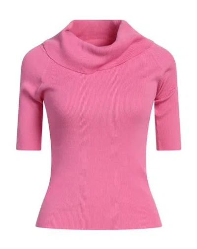 Woman Turtleneck Fuchsia Size 2 Cotton, Silk In Pink