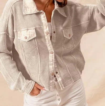 Mineral Washed Waffle Knit Loose Fit Shacket In Beige
