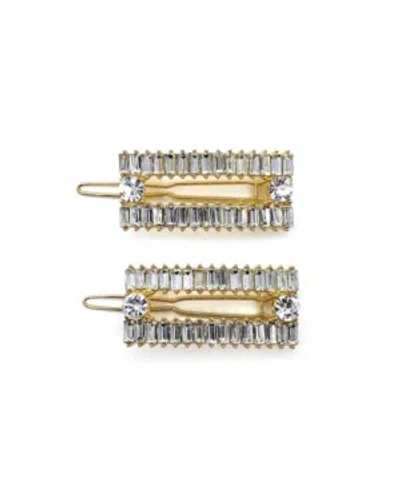 Women's Emerald Cut Rhinestones Barrette, Pack Of 2 In Gold