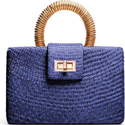 Woven Luxe Gold Handle Wristlet In Navy Blue