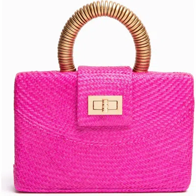 The Gracie Woven Buntal Straw Clutch Bag In Pink